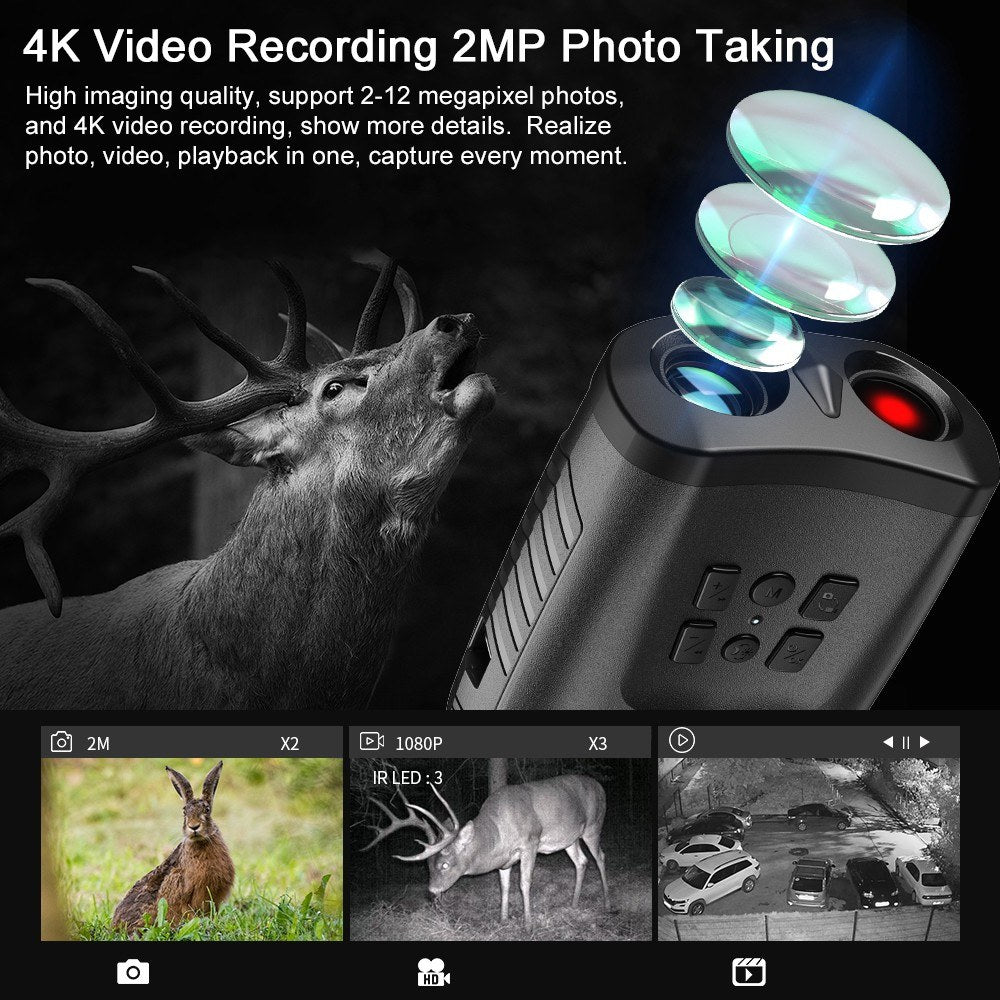 Experience the outdoors like never before with our cutting-edge 4K Infrared Night Vision Device. Engineered with a 3.0-inch digital LCD screen and boasting a high-resolution display of 854x480 pixels, this device offers 2MP clear imaging resolution, perfect for use both day and night.