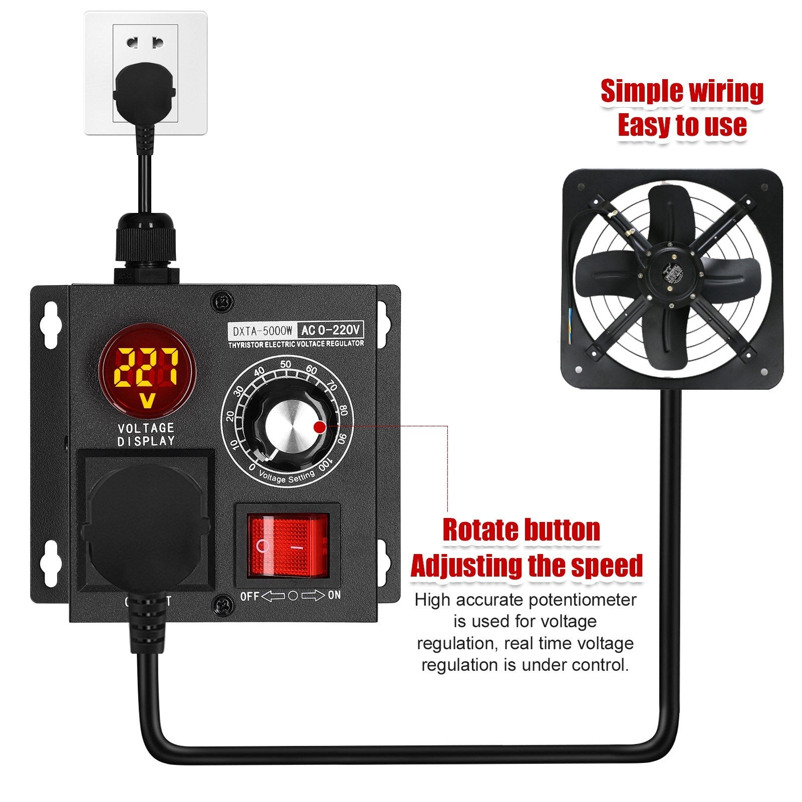 5000W Portable Stepless Voltage Regulator AC220V Monophase Controller for Temperature, Speed, and Light Adjustment